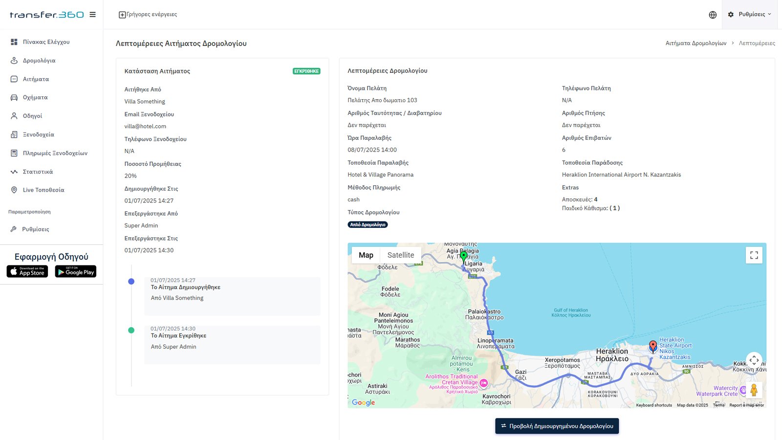 Ειδικό portal για συνεργαζόμενα ξενοδοχεία με δυνατότητα κράτησης και παρακολούθησης μεταφορών.
